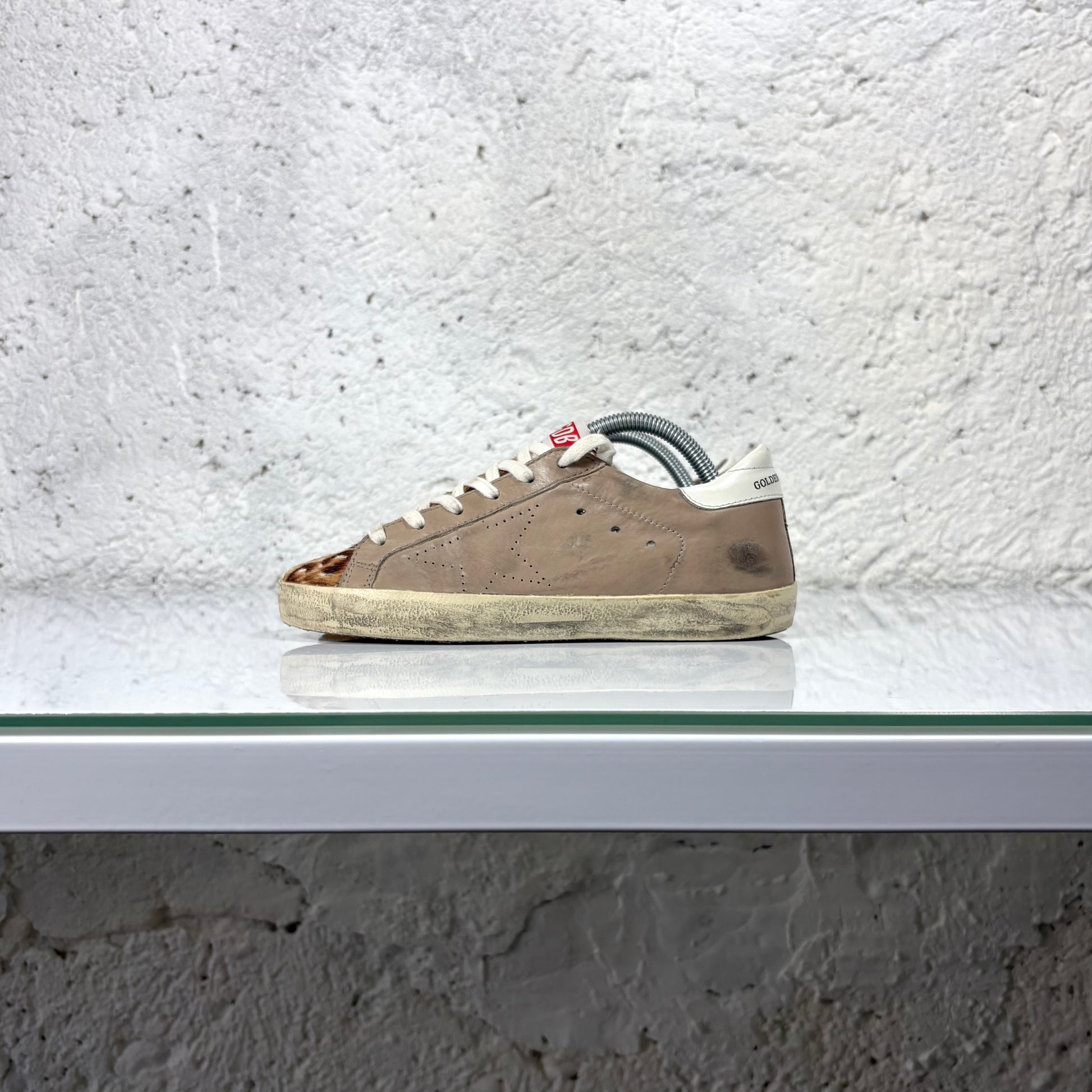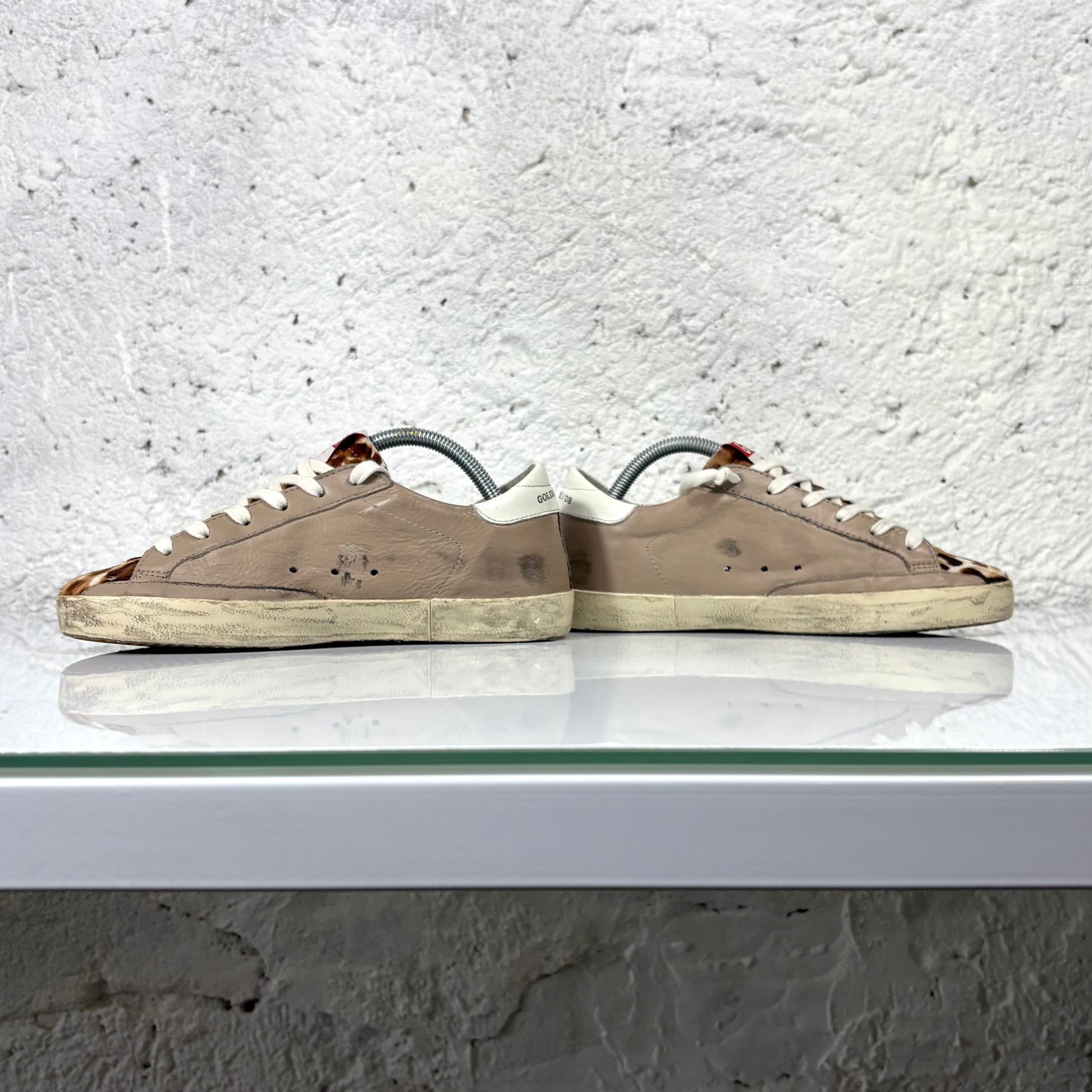 Golden goose Superstar beige in pelle con punta maculata in “cavallino” 37