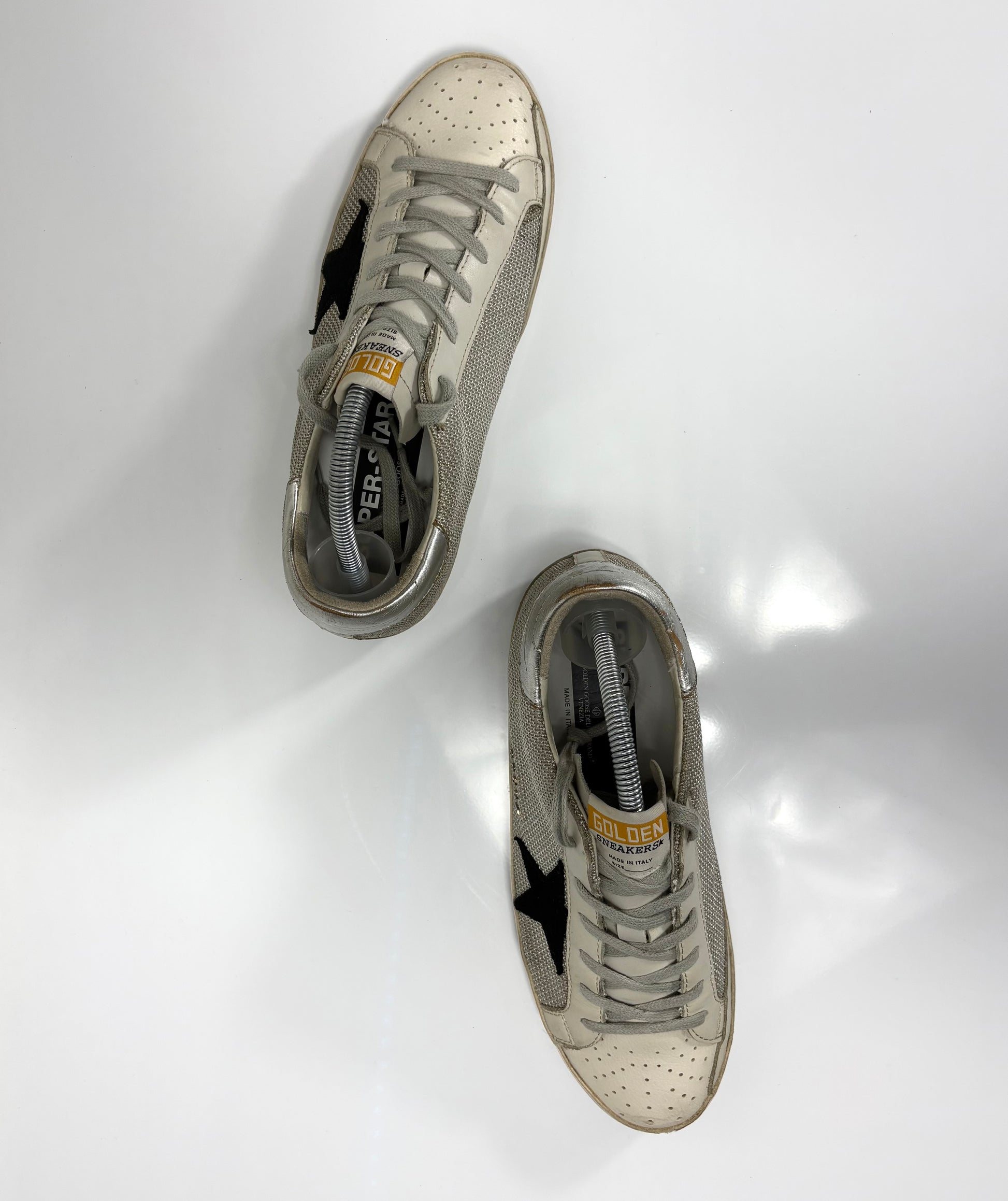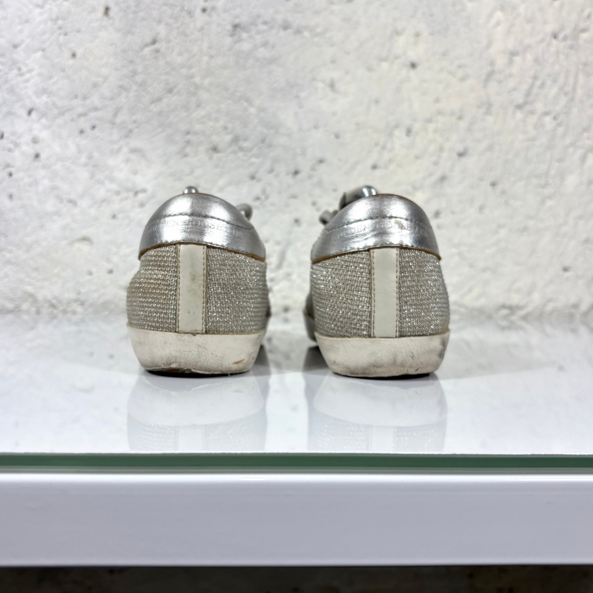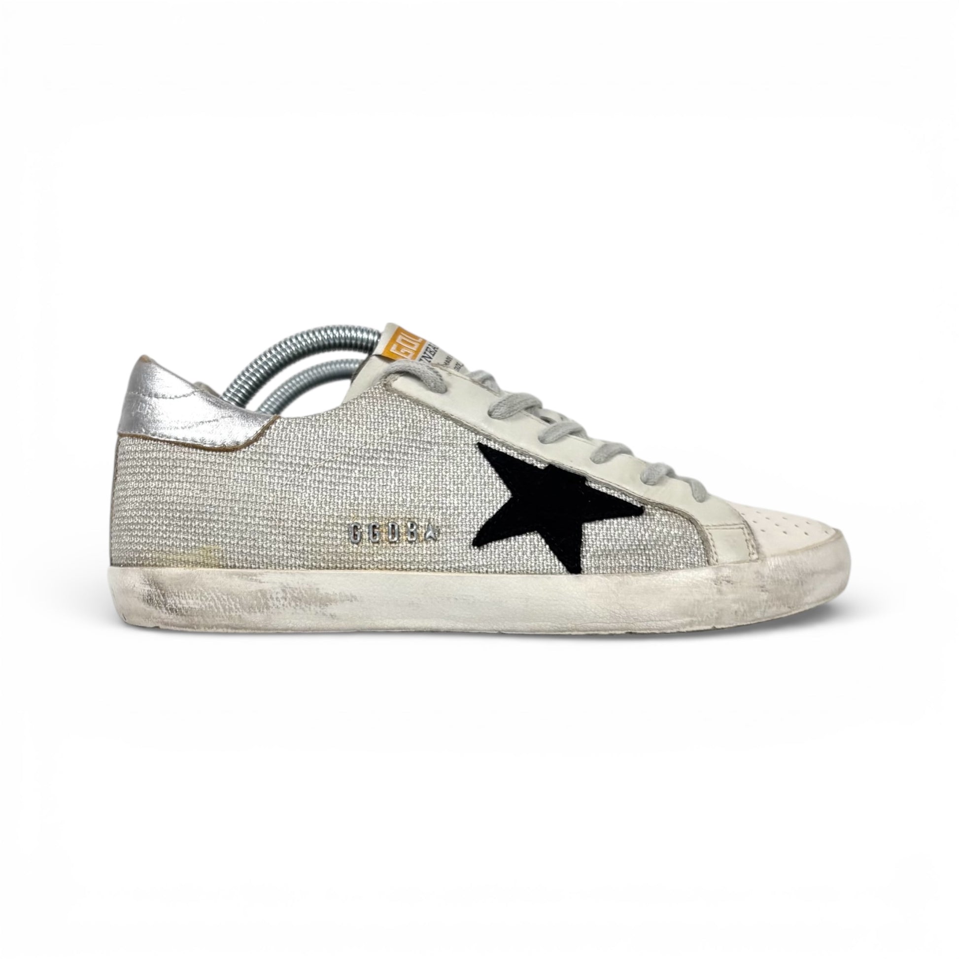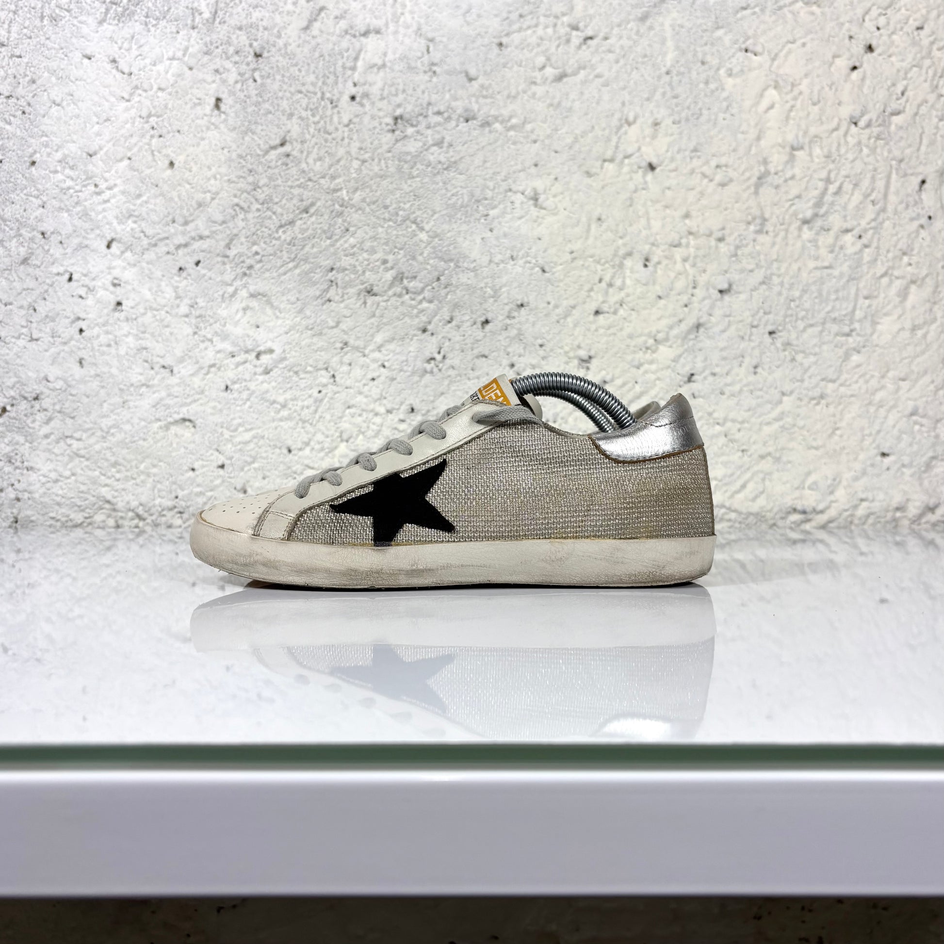Golden goose Superstr Grigio in tessuto, tallone argento con stella nera 39