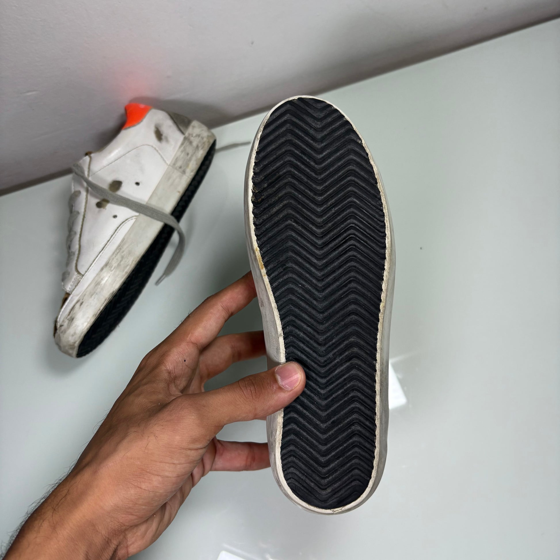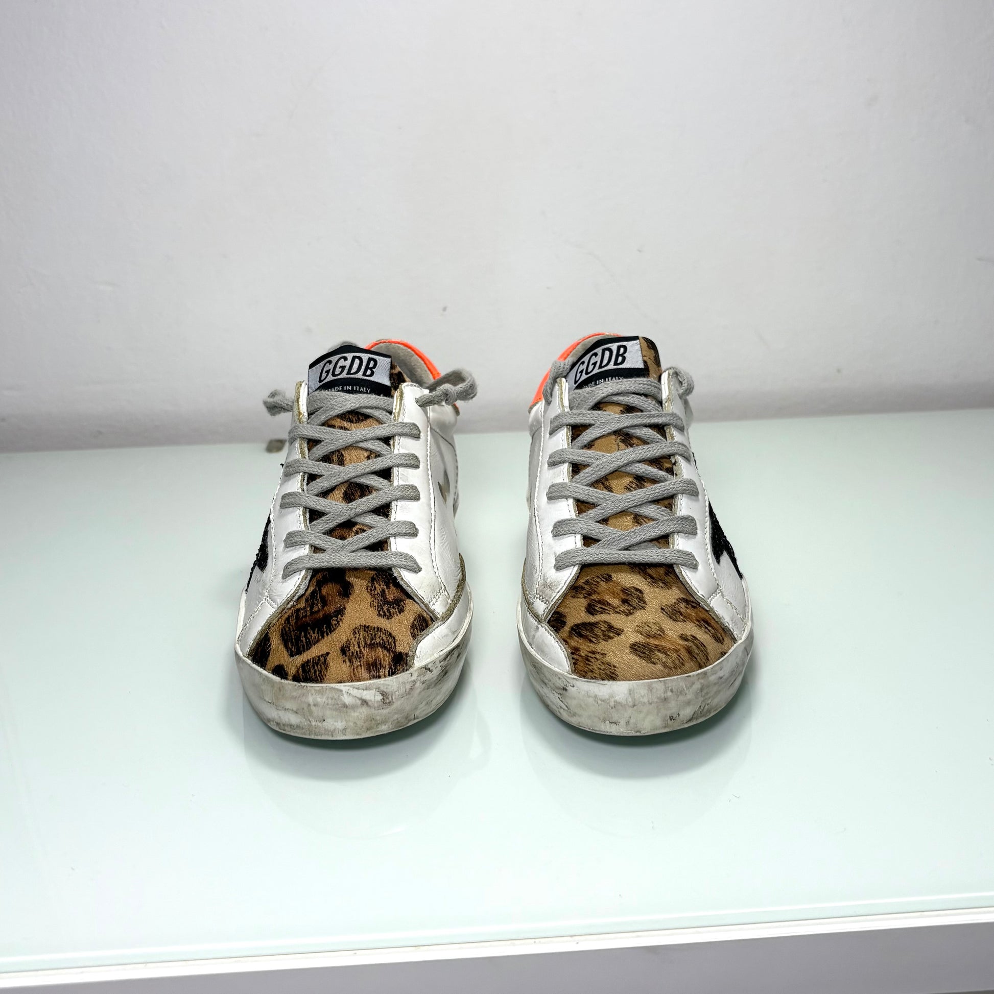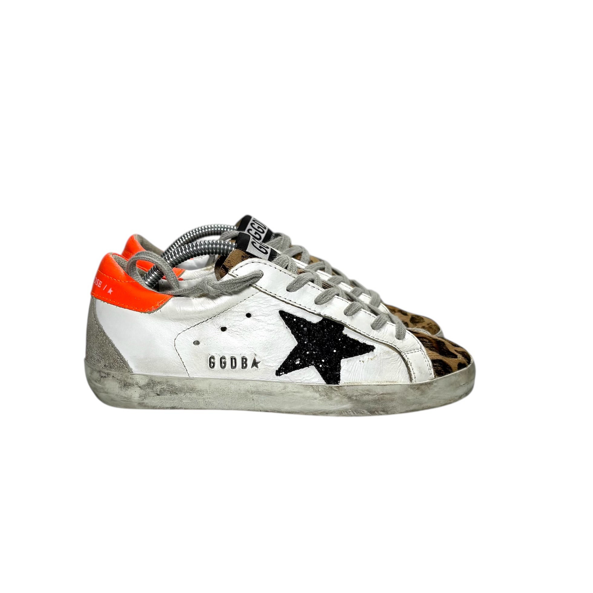 Golden goose superstar bianche tallone arancio e stella nera brillantinata 35