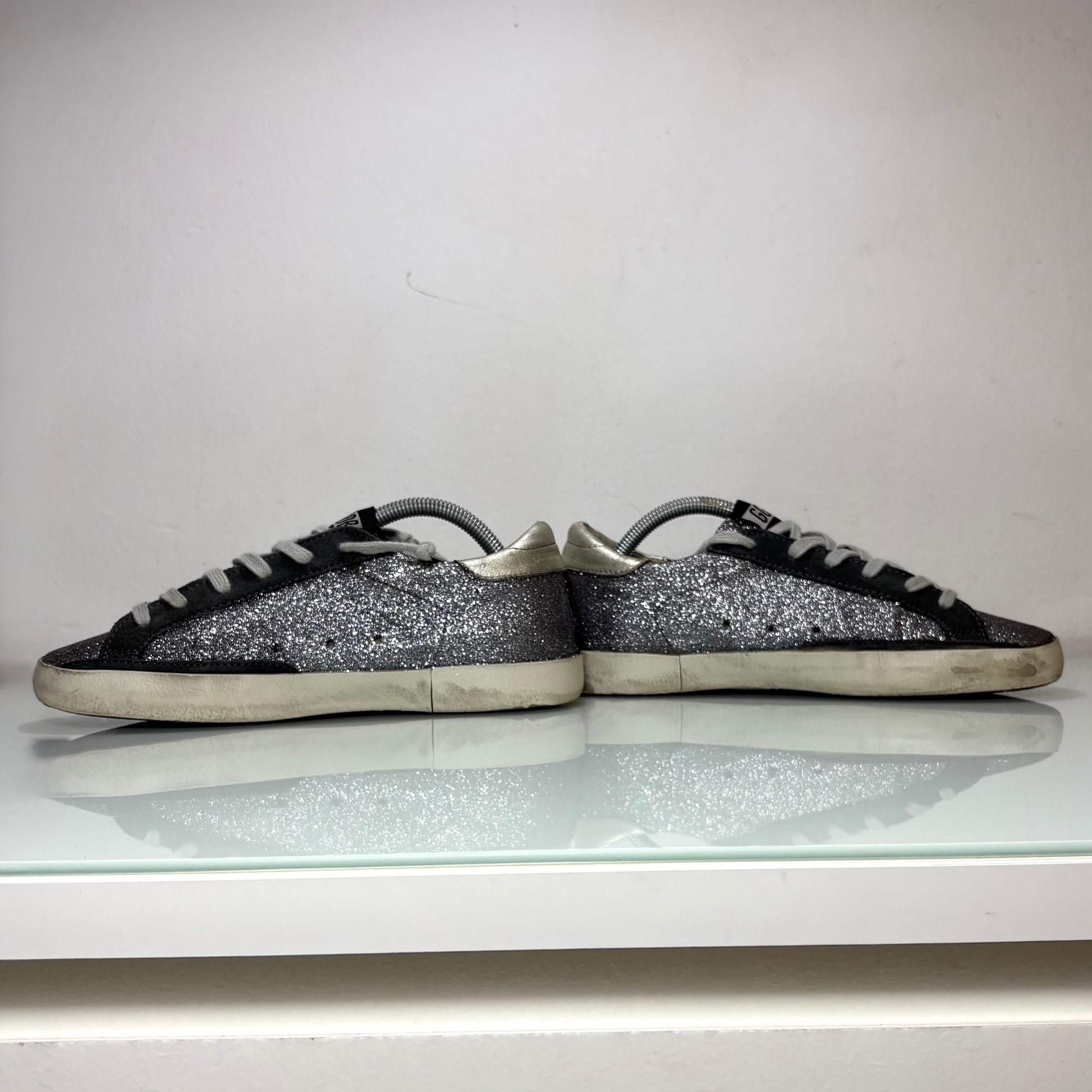 Golden goose Superstar glitter grigio stella blu e tallone argento 38